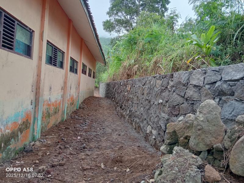 Tanggul Penahan Tanah dibangun pada bagian tepi lahan sekolah yang memiliki potensi kerawanan terhadap pergeseran tanah. Dengan adanya talud, kestabilan lahan sekolah dapat terjaga sehingga aktivitas belajar mengajar dapat berlangsung dengan lebih aman dan nyaman.