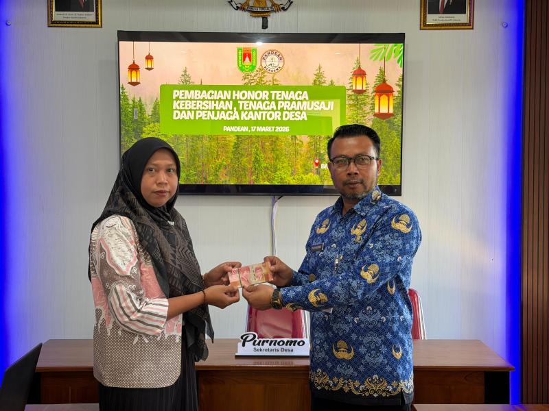 Pada hari Selasa, 17 Maret 2026, Pemerintah Desa Pandean melaksanakan kegiatan penyerahan honor kepada tenaga kebersihan, penjaga balai desa, dan pramusaji. Kegiatan ini berlangsung di Aula Rajawali Desa Pandean dalam suasana hangat dan penuh kebersamaan menjelang Hari Raya Idul Fitri.