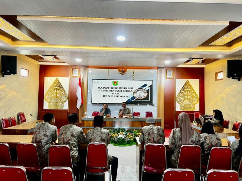 Pemerintah Desa Pandean melaksanakan rapat koordinasi bersama Badan Permusyawaratan Desa (BPD) dalam rangka evaluasi kinerja perangkat desa. Kegiatan ini berlangsung di Balai Desa Pandean dengan dihadiri oleh Perangkat desa, serta anggota BPD.