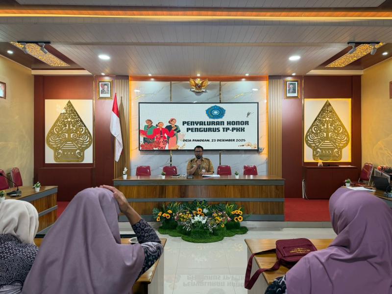 Pemerintah Desa Pandean melaksanakan kegiatan penyerahan honor kepada Tim Penggerak PKK Desa Pandean yang bertempat di Aula Rajawali Desa Pandean. Kegiatan ini merupakan bentuk apresiasi dan penghargaan atas peran aktif TP PKK dalam mendukung pembangunan desa, khususnya dalam pemberdayaan keluarga dan peningkatan kesejahteraan masyarakat.