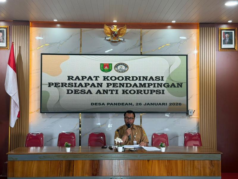 Pandean, 26 Januari 2026 — Pemerintah Desa Pandean menggelar Rapat Koordinasi Persiapan Pendampingan Desa Anti Korupsi pada Senin, 26 Januari 2026, bertempat di Aula Rajawali Desa Pandean. Kegiatan ini diikuti oleh seluruh perangkat desa sebagai bagian dari komitmen bersama dalam mewujudkan tata kelola pemerintahan desa yang bersih dan transparan.