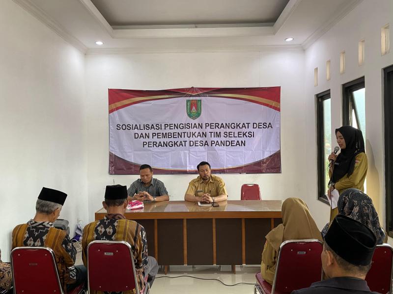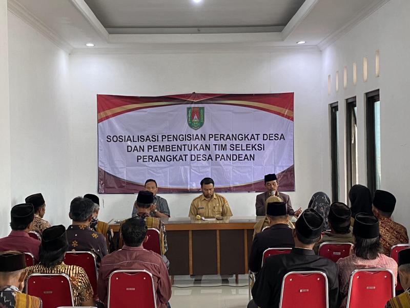 Pandean – Pemerintah Desa Pandean menyelenggarakan kegiatan sosialisasi terkait pelaksanaan seleksi pengisian perangkat desa yang disertai dengan pembentukan tim seleksi. Kegiatan tersebut dilaksanakan di aula desa dan diikuti oleh unsur perangkat desa, lembaga desa, serta perwakilan masyarakat.