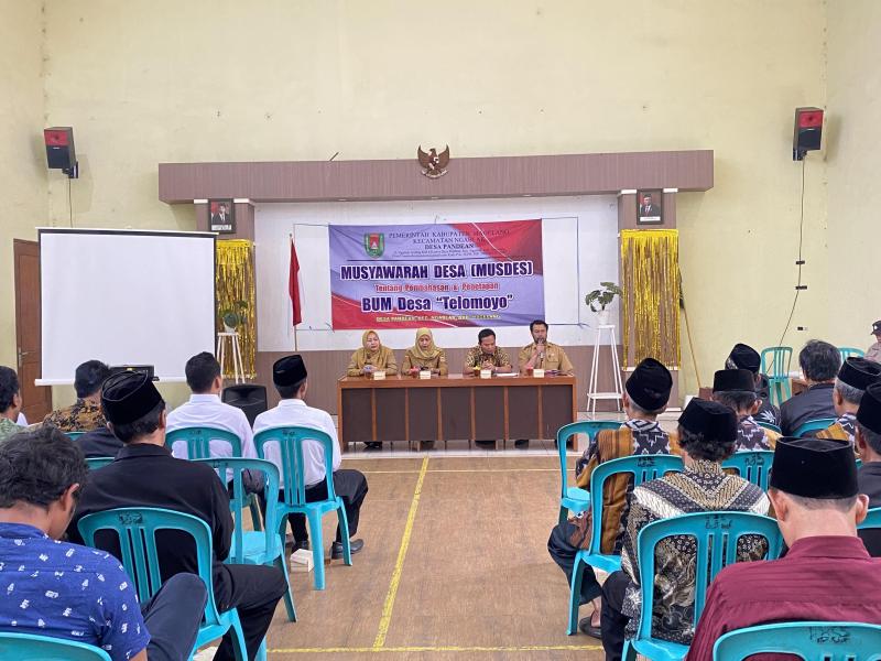 Pemerintah Desa Pandean, Kecamatan Ngablak, Kabupaten Magelang, melaksanakan Musyawarah Desa (Musdes) dengan agenda pembahasan dan penetapan Badan Usaha Milik Desa (BUM Desa) “Telomoyo”. Kegiatan ini diselenggarakan sebagai upaya strategis dalam mendorong penguatan perekonomian desa melalui pengelolaan potensi lokal secara mandiri dan berkelanjutan.