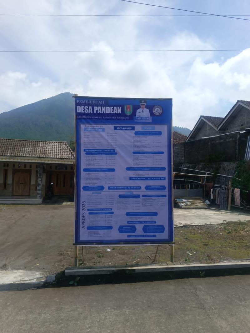 Pemerintah Desa Pandean, Kecamatan Ngablak, melaksanakan kegiatan pemasangan banner informasi realisasi Anggaran Pendapatan dan Belanja Desa (APBDes) Tahun 2025 di sejumlah lokasi strategis yang mudah diakses oleh masyarakat. Kegiatan ini dilakukan sebagai bentuk keterbukaan informasi pengelolaan keuangan desa kepada seluruh warga.