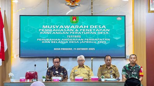 Pemerintah Desa Pandean menyelenggarakan kegiatan Musyawarah Desa (Musdes) Pembahasan dan Penetapan Rancangan Peraturan Desa tentang Perubahan Anggaran Pendapatan dan Belanja Desa (APBDes) Tahun Anggaran 2025 pada Selasa, 14 Oktober 2025. Kegiatan ini dilaksanakan di Aula Rajawali Desa Pandean sebagai bagian dari upaya mewujudkan tata kelola pemerintahan desa yang transparan, akuntabel, dan partisipatif.
