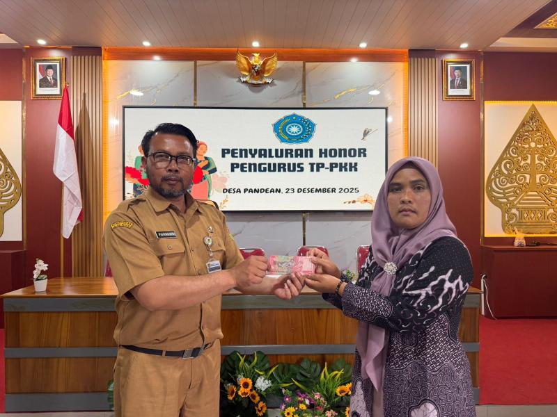 Pemerintah Desa Pandean melaksanakan kegiatan penyerahan honor kepada Tim Penggerak PKK Desa Pandean yang bertempat di Aula Rajawali Desa Pandean. Kegiatan ini merupakan bentuk apresiasi dan penghargaan atas peran aktif TP PKK dalam mendukung pembangunan desa, khususnya dalam pemberdayaan keluarga dan peningkatan kesejahteraan masyarakat.