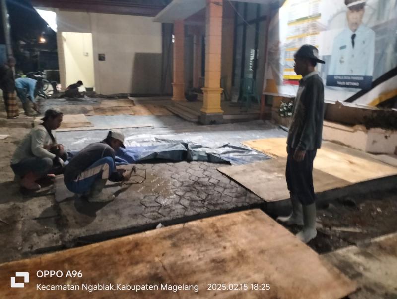 Plesterisasi dilakukan pada area yang sebelumnya masih berupa permukaan tanah, sehingga saat musim hujan sering menimbulkan genangan dan becek. Dengan adanya plesterisasi, akses masyarakat menuju kantor desa menjadi lebih mudah dan aman, sekaligus mendukung kelancaran aktivitas pelayanan pemerintahan desa.