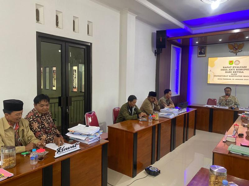Rakor ini dilaksanakan sebagai tindak lanjut atas pendampingan hari ketiga yang dilakukan oleh Inspektorat Kabupaten Magelang dengan fokus pada Komponen 2 Desa Anti Korupsi, yaitu Penguatan Pengawasan.